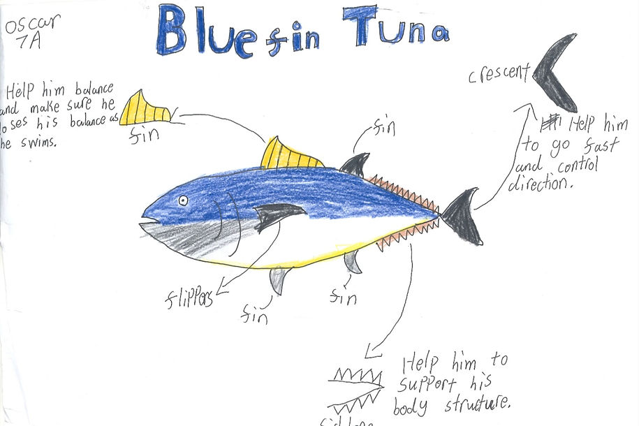 The bluefin tuna is between 6 and 10 feet long. to make tuna special is speed and endurance ,long -distance. tuna babies look like small and transparent,, just ,a few millimeters in length, tunas have a pointed head, a large, caudal fin, it has a dark blue - black back.